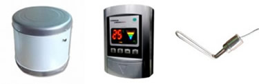 - Respaldo eléctrico: apoyo eléctrico opcional, consistente en una resistencia eléctrica de 1500 watts, que calienta el agua en caso de que esta esté por debajo de la temperatura mínima programada en el controlador digital. Normalmente esto puede ser necesario en períodos de varios días seguidos con lluvia o mucha nubosidad. |