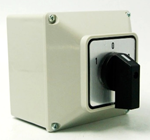 | CONMUTADOR ROTATIVO 3 posiciones 32A. En caja a prueba de agua. 3 posiciones 2 fases. Ideal para seleccionar alimentacion solar, generador de respaldo o red. Dimensiones 110x110x105mm. |