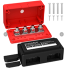 | BARRAS DE CONEXIÓN BUSBAR Para conexión de baterias, inversor y regulador de carga de manera fiable y segura. 500A 4xM8 + 2xM10 color rojo o negro |