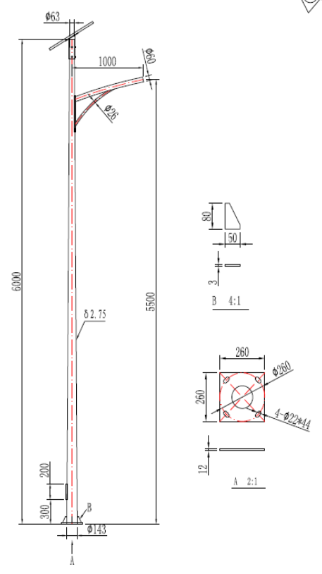 POSTE 6 METROS. Galvanizado y electropintado color gris. Seccion cónica. Incluye: