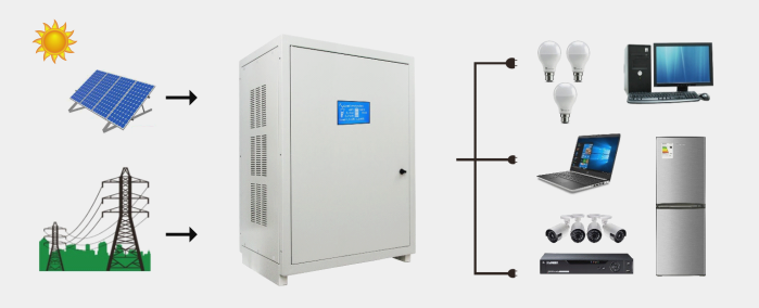 | Potencia máxima: 2.000W Onda sinusoidal pura Transferencia automática Tiempo de transferencia: <20ms Auto-reinicio, cuando retorna la energía de red. Tiempo de recarga tras descarga total: 5 horas. Pantalla LCD color. Parámetros en tiempo real. Protección ante sobrecarga o cortocircuito. Usos: computadores, iluminación, sistemas de cámaras, TV, refrigerador, etc. |